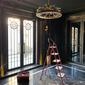 جهت بالا رفتن و تمیز کردن لوستر از نردبان یا چهارپایه محکم استفاده نمایید. پیشنهاد میشود این کار را با همراهی فردی دیگر انجام دهید.
