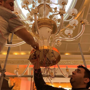 جدا کردن قطعات لوستر را به گونهای انجام دهید که تعادل آن بر هم نخورد. پیشنهاد میشود که به تناسب از سمت چپ و راست لوستر به صورت همزمان قطعات را جدا کنید.