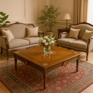 همچنین میتوان به میز وسط چوبی منبت کاری شده با صفحه سنگ اشاره کرد که طرفداران بسیاری در میان کلاسیک پسندان دارد. هر دو این مدل میزها در بازار دکوراسیون داخلی جدید به حساب میآیند و شما میتوانید به راحتی هر کدام از این دو مدل موجود در بازار را تهیه کنید فقط باید توجه کافی داشته باشید که میز انتخابی شما با سبک کلی دکوراسیون داخلی شما سازگار باشد.