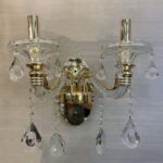 لوستر دیواری دو شاخه طلایی و بلوری – زیباترین لوستر دیواری دو شاخه