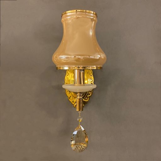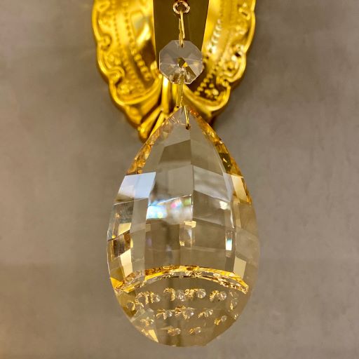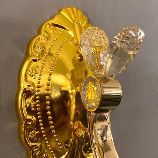 بدنه چراغ دیواری دکوراتیو طلایی از فلز آبکاری شده ساخته شده است که در برابر آسیب و خوردگی مقاوم است. آویز لوستر نیز از جنس کریستال میباشد.