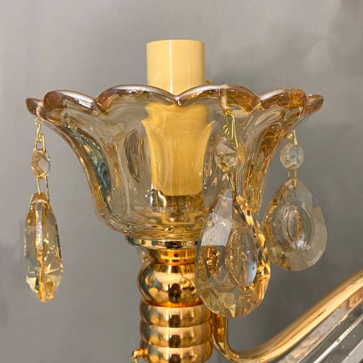 لوستر دیواری کلاسیک دو شاخه طلایی – لوستری پرنور و زیبا