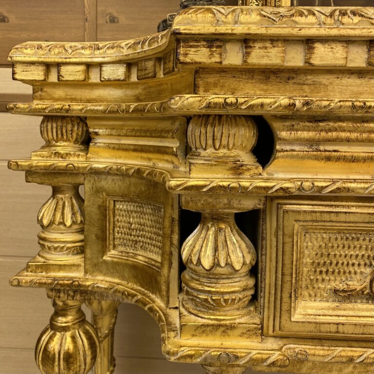 بدنه میز کنسول طلایی چوبی ویولا از چوب راش ساخته شده است و با هنر زیبای منبت تزیین شده. بدنه و پایههای کنسول طلایی ویولا تمام منبت کاری شده است. میز کنسول ویولا سه کشو قابل استفاده دارد.