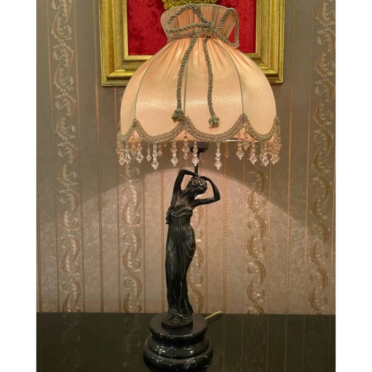 آباژور برنزرومیزی کلاسیک زن رنگ آنتیک