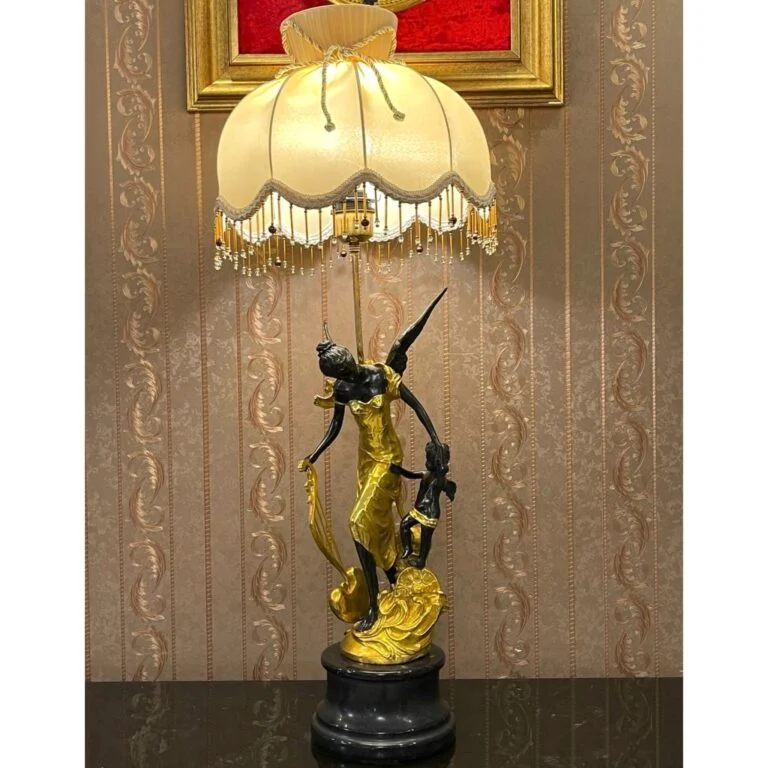 آباژور برنز رومیزی کلاسیک طلایی مادر و کودک