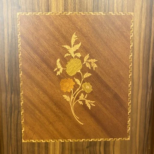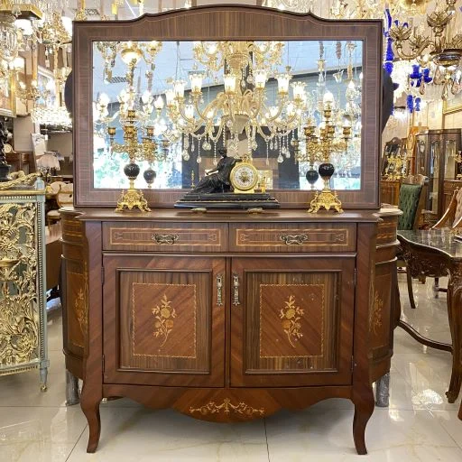 بدنه آینه و کنسول شیک معرق از چوب راش ساخته شده است و بر روی بدنه این کار با هنر زیبایی معرق تزیین شده است. این محصول دو کشو و دو کمد دو طبقه قابل استفاده دارد.