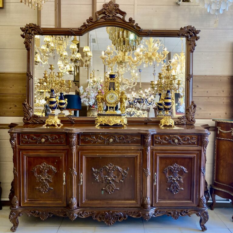 این مدل آینه و کنسول با منبت کاری‌های بسیار بر روی بدنه یک اثر هنری فاخر می‌باشد که در پَس هر منبت، روایتی از پیچ و خم هنر اصیل ایرانی نهفته است. این محصول در نهایت زیبایی، شکوه و اصالت به دکوراسیون داخلی شما می‌بخشد.