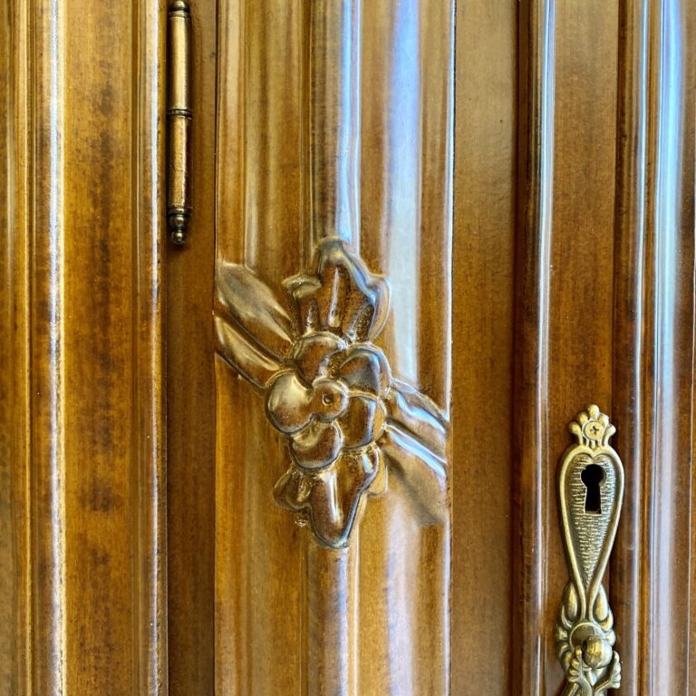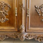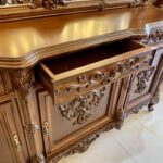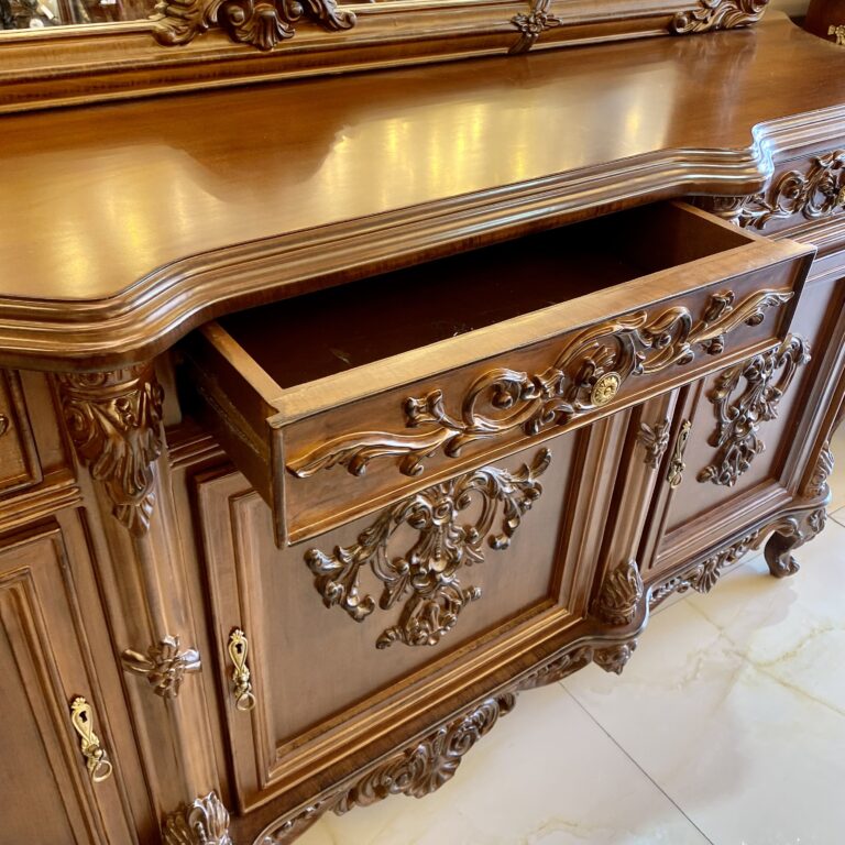 سوای از زیبایی و طراحی منحصر به فرد این آینه و کنسول، منبت کاری‌های فوق العاد بر روی بدنه این آیتم چوبی بر شکوه این کار افزوده است. منبت کاری یک هنر قدیمی و تاریخی به معنای کنده کاری بر روی چوب است که به زیبایی در این آینه و کسنول نمایان است.