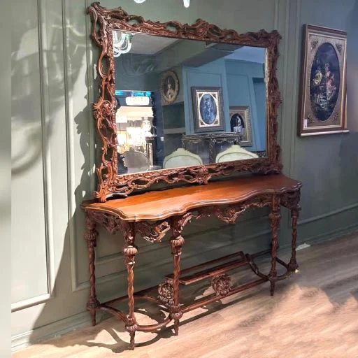 آینه و کنسول وسیله دکوری بسیار شیک و جذاب در دکوراسیون داخلی است که محیطی جدید برای شما خلق میکند. از این وسیله دکوری میتوان جهت پُر کردن فضاهای خالی در دکوراسیون داخلی استفاده نمود و یا به جهت دکور کردن آیتمهای دکوری مانند ساعت و شمعدان و ظرف یا مجسمه.