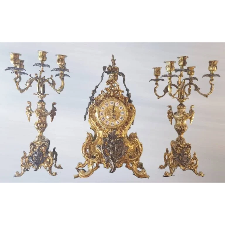 ساعت و شمعدان شیک آنتیک برنز و طلایی