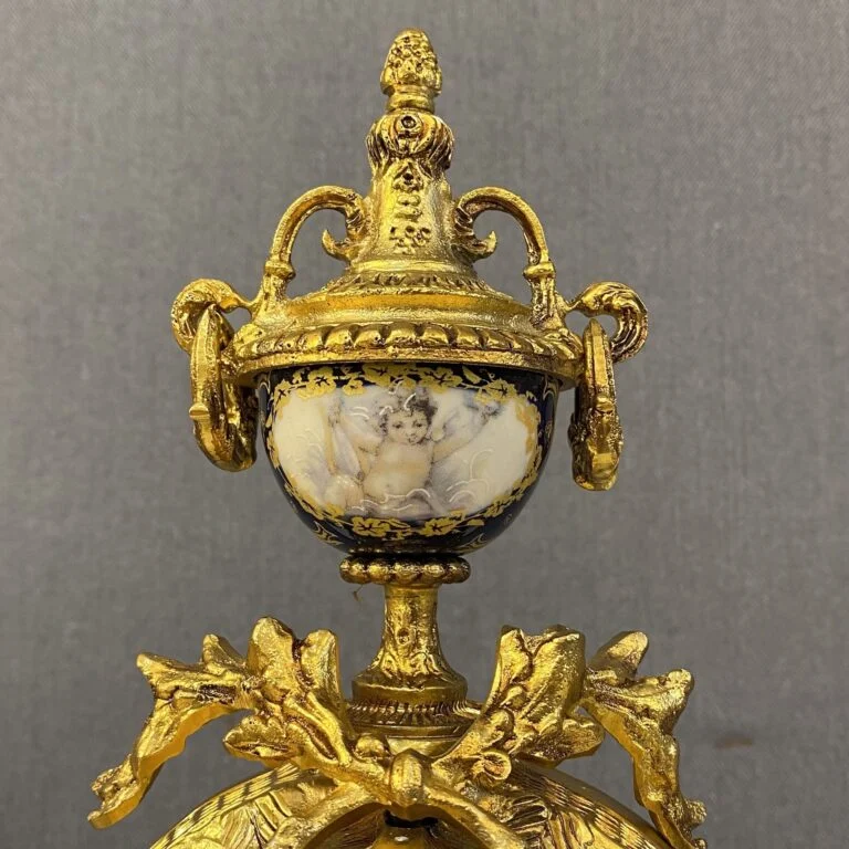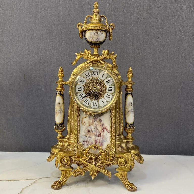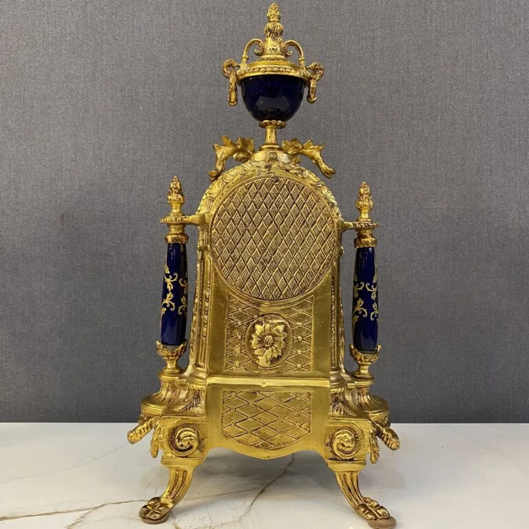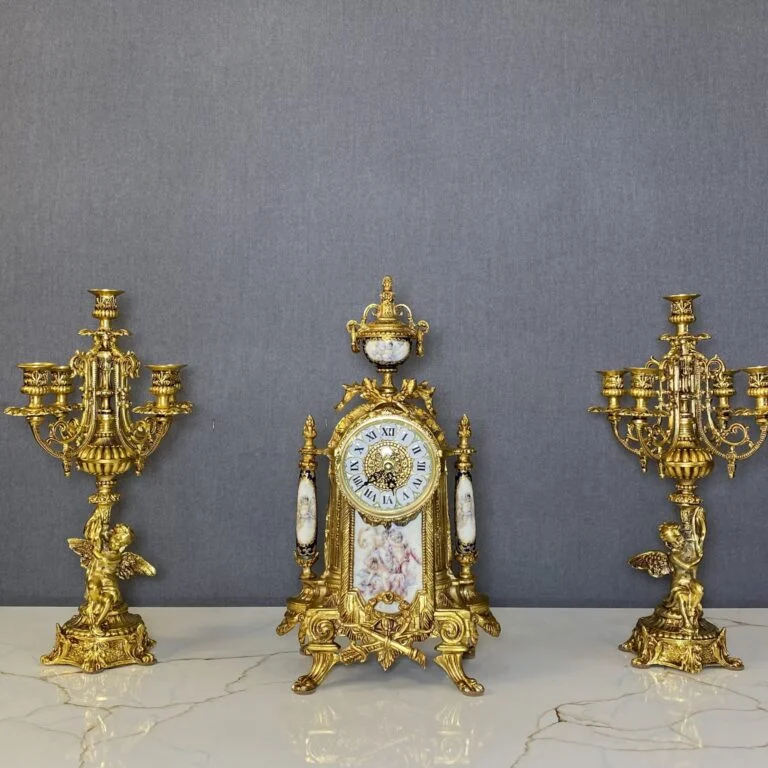 ساعت و شمعدان طلایی با ساعت آبی برنز مجموعهای از ساعت و دو عدد شمعدان است که بدنه آن از برنز ساخته شده است. ساعت و شمعدان برنز به عنوان اکسسوری قابل استفاده در دکوراسیون میباشد. ساعت و شمعدان کاربرد دکوری دارد و از آن میتوان برای دکور کردن کنسول، میز یا شومینه استفاده کرد.