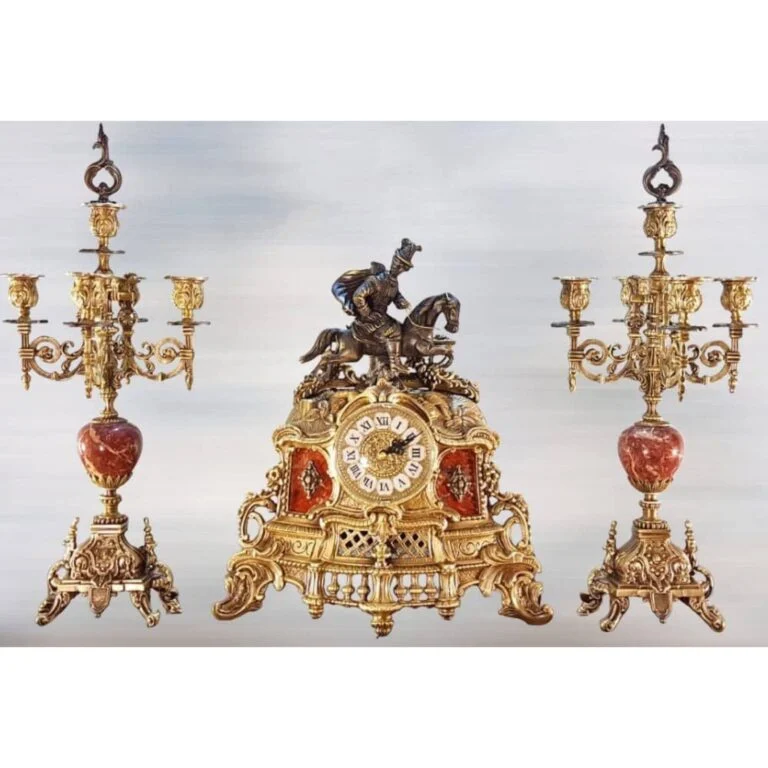 ساعت و شمعدان قرمز و طلایی طرح ناپلئون