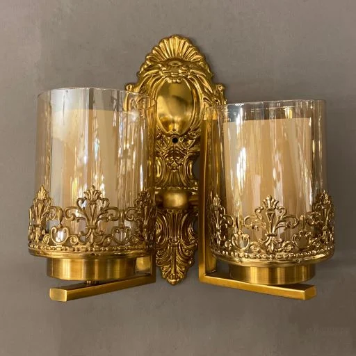 چراغ دیواری لوکس دو شاخه طلایی – لوستر دیواری پرنور