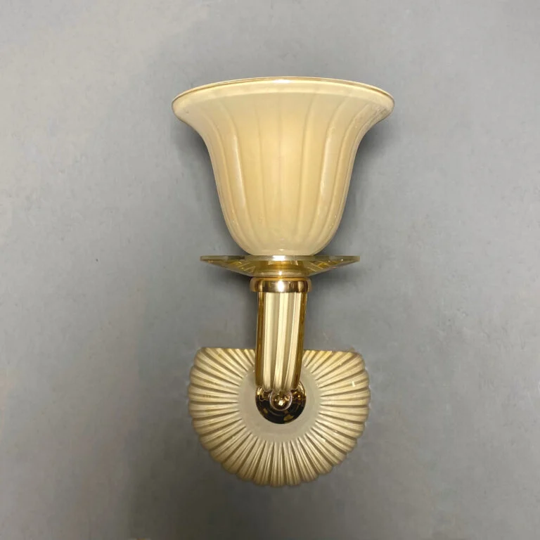 چراغ دیواری دکوراتیو کرم تک شعله. بدنه این چراغ دیواری از فلز آبکاری شده ساخته شده است و آویزها و کاسه آن از جنس کریستال می‌باشد. این چراغ دیواری از سری چراغ های وارداتی از شرکت رویال فرانسه می‌باشد.