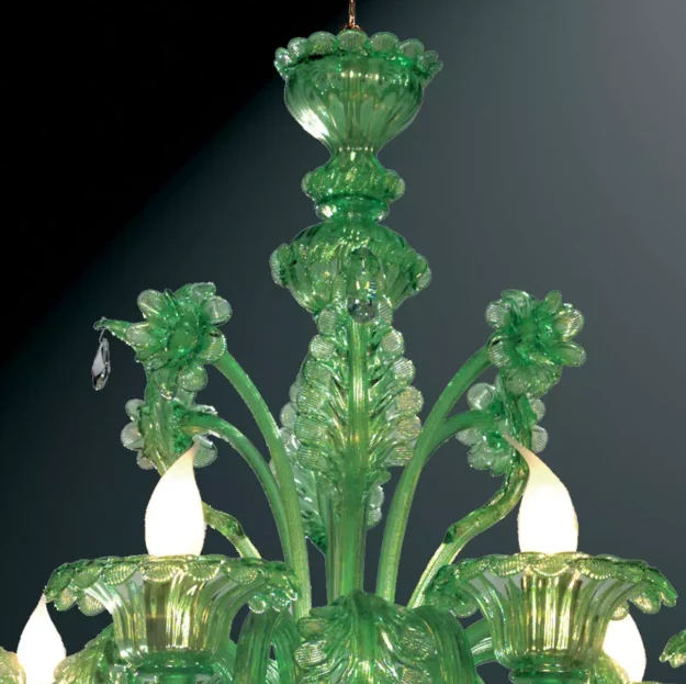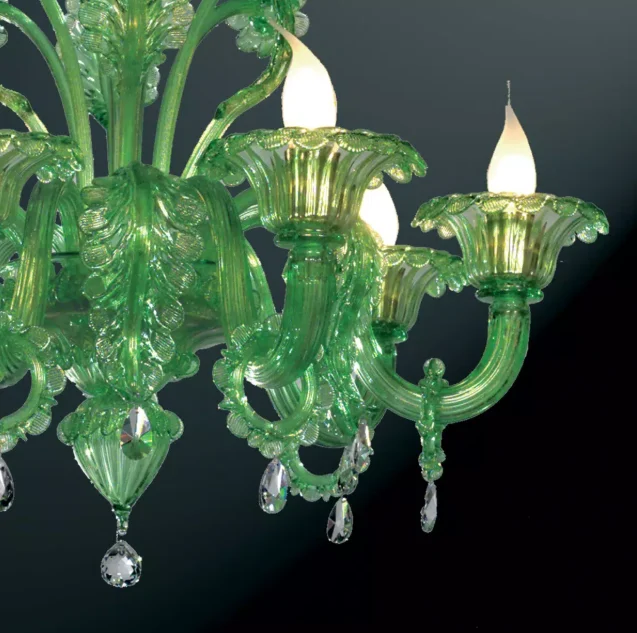 لوستر سبز مورانو هشت شاخه است و قابلیت سفارش در تعداد شاخههای متفاوت و رنگ دلخواه شما را دارد.