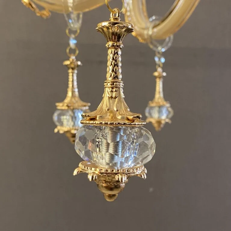این کار از ظرافت بسیاری برخوردار است و طراحی لوکس و متفاوتی دارد. این لوستر از فلز آبکاری شده و کریستال ساخته شده است.