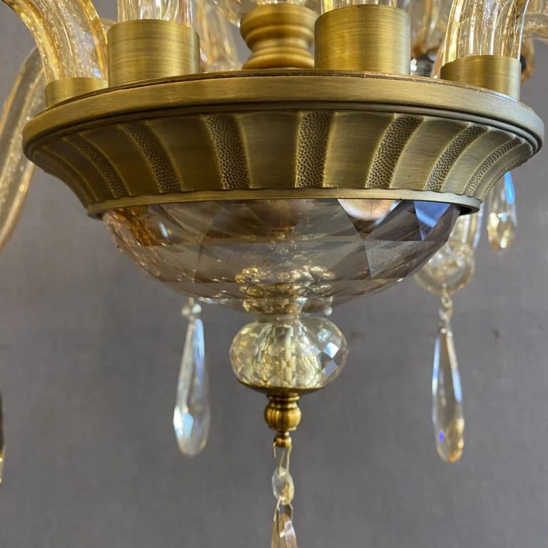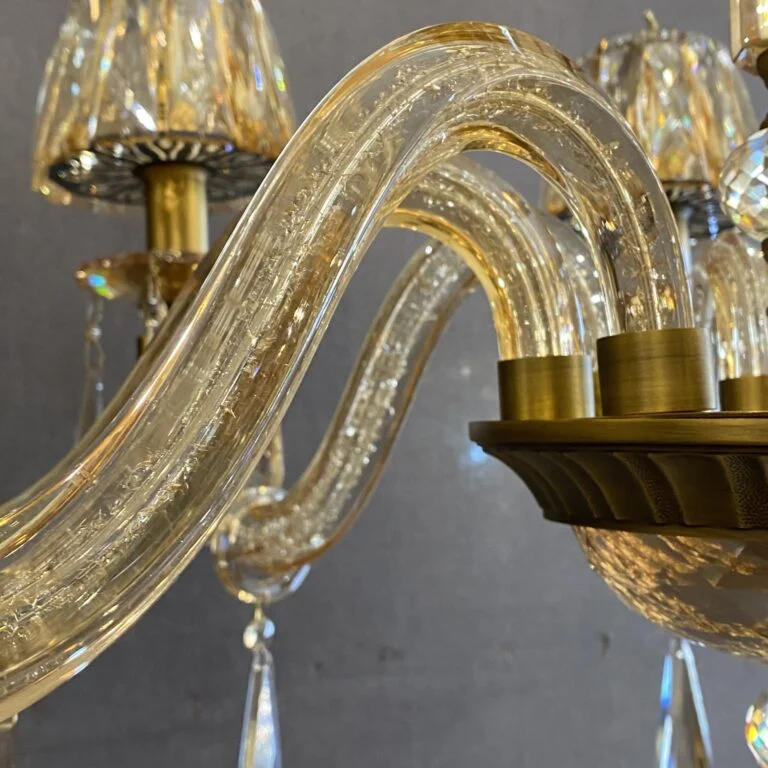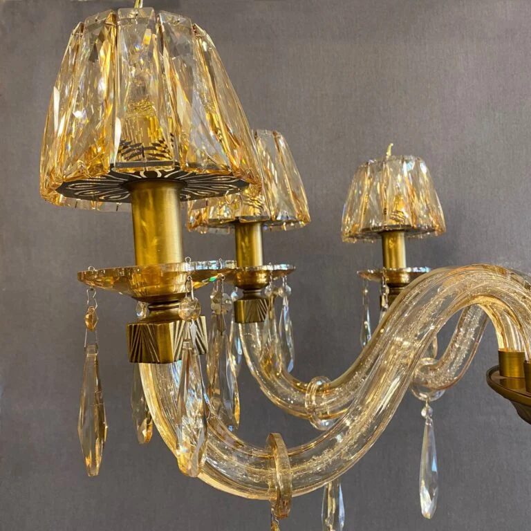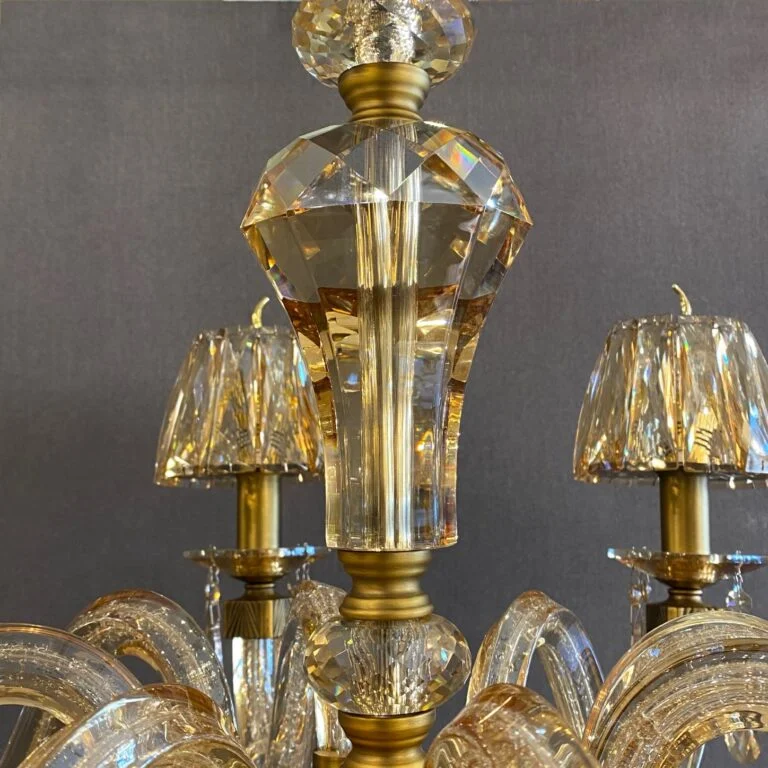 لوستر کلاسیک زیبای طلایی به علت مولتی کالر بودن و پخش رنگهای متفاوت در زوایای مختلف، زیبایی خاصی به همراه دارد. به جهت اینکه این کار زیبا بتواند عمق شکوه خود را به خوبی نشان دهد خوب است که در فضایی لوکس و مجلل دکور شود.