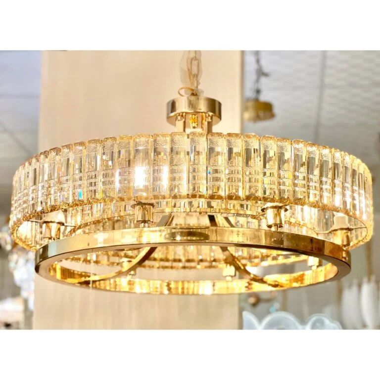 لوستر گرد مدرن طلایی از فلز آبکاری شده ساخته شده است و آویزهای آن از جنس کریستال میباشند. این لوستر از سری لوسترهای مدرن وارداتی موجود در ترنم گالری میباشد.