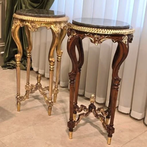 میز تلفن گرد کلاسیک پایه خراطی؛ دوست‌داشتنی و زیبا