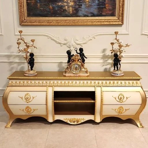 میز تلویزیون طلایی به دلیل طراحی ظاهری و ساختاری که دارد به راحتی با سایر آیتمهای دکوراسیون داخلی هماهنگ میشود و میتوانید این کار در دکوراسیون کلاسیک با چیدمانهای متفاوت دکور نمایید و از زیبایی آن لذت ببرید. همچنین مقاومت بدنه و استحاکم بدنه میز تلویزیون چوبی به خوبی از تلویزیون شما محافظت مینماید و وزن آن را تاب میآورد.