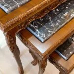 میز عسلی قهوه ای شیک منبت و سنگ؛ فوق العاده زیبا و متفاوت