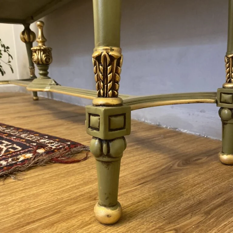 میز کنسول سبز و طلایی در رنگبندی موجود است. این کار در بستهبندی پلمپ و با ضمانت گالری برای شما ارسال میگردد.