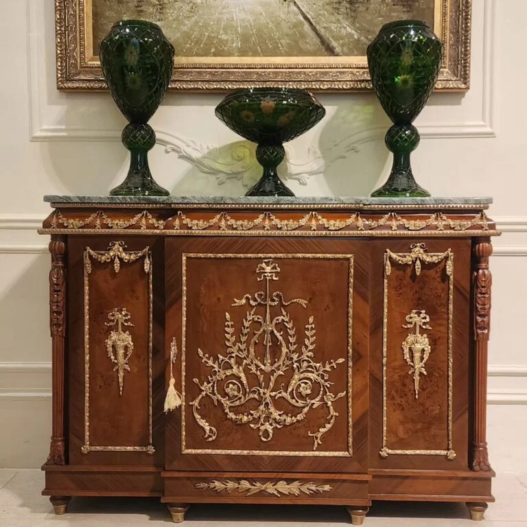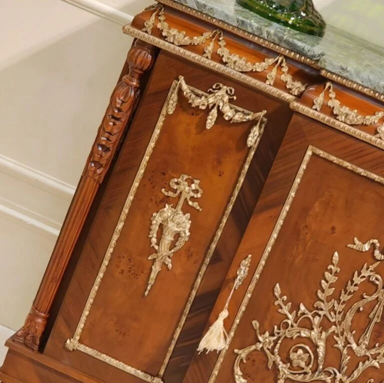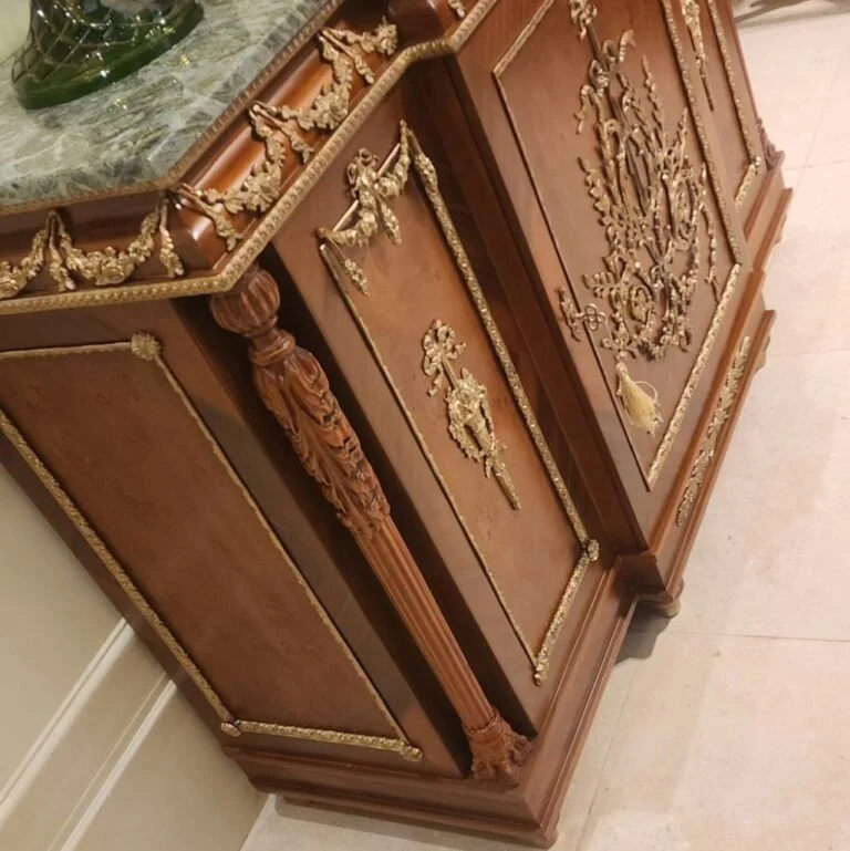 زیبایی کار تنها منحصر به طراحی آن نمی‌شود بلکه سلیقه و ذوق در ساخت برنزها و ریخته‌گری آن به وضوح مشهود است. این میز کنسول شیک ترکیبی فوق العاده زیبا و ظریف از چوب، برنز و سنگ است که به خوبی در کنار هم قرار گرفته‌اند و طرحی چنین اصیل و باشکوه خلق کرده‌اند. این میز کنسول تنها یک دکوری برای منزل محسوب نمی‌شود بلکه روایتی اصیل از عناصر طبیعی در کنار تاریخ است.