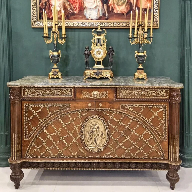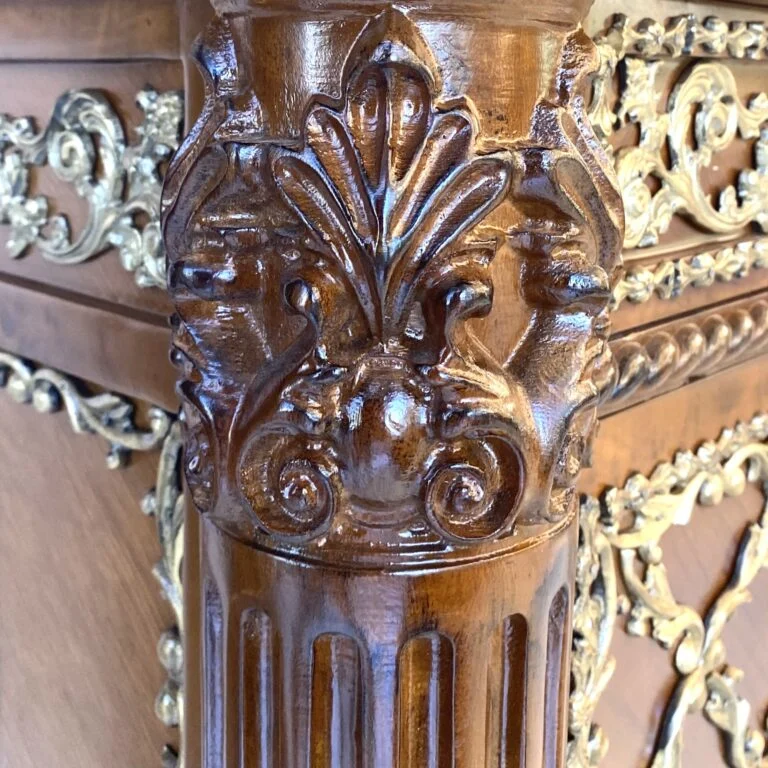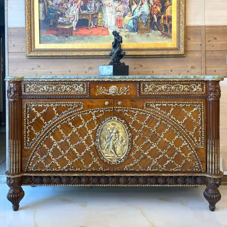 این کنسول تنها یک دکوری چوبی نیست بلکه یک اثر هنری خلق شده از چوب و برنز و سنگ است که به زیبایی با یکدیگر ترکیب شده‌اند و محصولی فوق العاده ساخته شده است. این کار از ارزش مادی و هنری بسیاری برخوردار است که اگر به درستی نگه‌داری شود بر ارزش آن افزوده می‌شود.