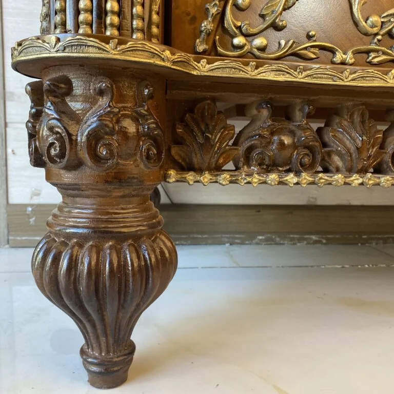 این دکوری زیبا و باشکوه از چوب ساخته شده است و درتزیین آن سنگ و برنز به کار رفته است. میز کنسول شیک چوبی در بسته‌بندی پلمپ و با بیمه و ضمانت گالری برای شما ارسال می‌گردد.