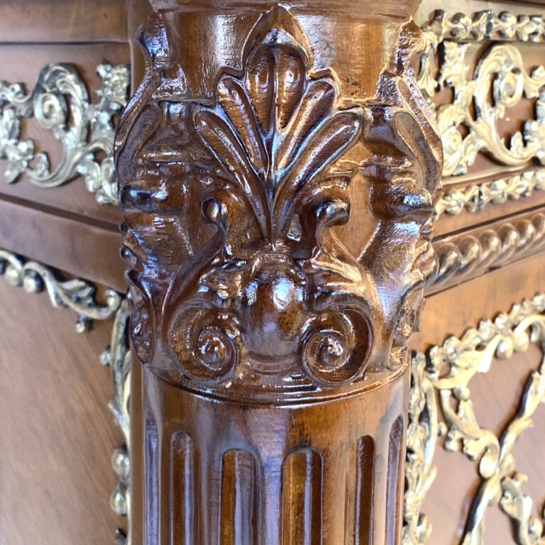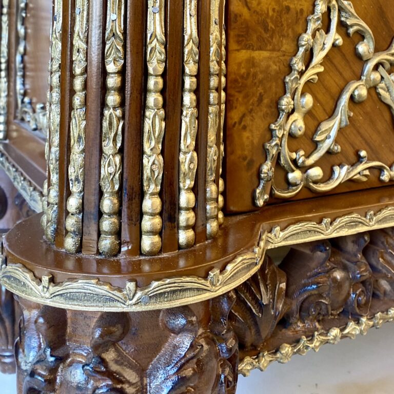 این کنسول تنها یک دکوری چوبی نیست بلکه یک اثر هنری خلق شده از چوب و برنز و سنگ است که به زیبایی با یکدیگر ترکیب شدهاند و محصولی فوق العاده ساخته شده است. این کار از ارزش مادی و هنری بسیاری برخوردار است که اگر به درستی نگهداری شود بر ارزش آن افزوده میشود.